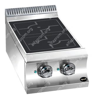 Индукционная плита Apach Chef Line GLRI49 900-й серии предназначена для приготовления различных блюд из мяса, птицы, рыбы и овощей в наплитной посуде на предприятиях общественного питания и торговли. Модель оснащена электромеханической панелью управления с 2 терморегуляторами и 2 световыми индикаторами. Корпус выполнен из нержавеющей стали AISI 304, рабочая поверхность - из стали толщиной 2 мм.